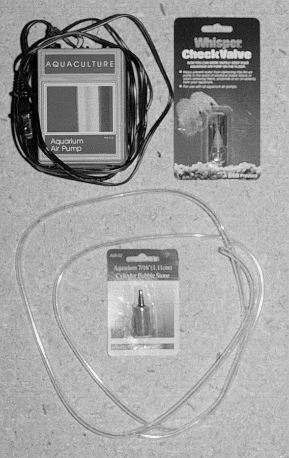 air pump, some 1/4 inch, outside diameter, plastic air tubing and an air