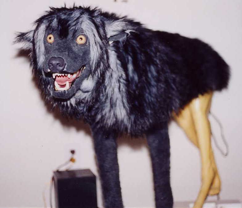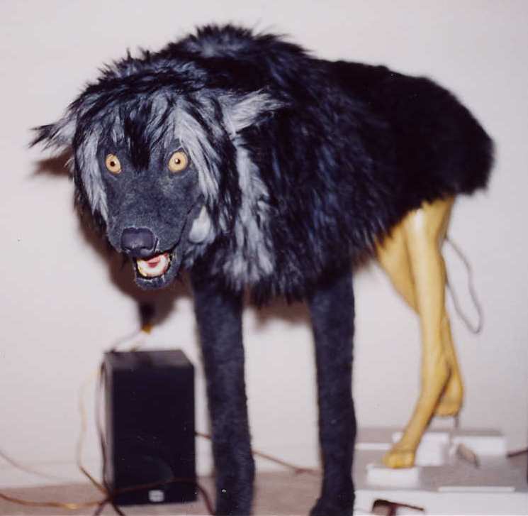 Animated mechanism robbed from reindeer and installed in wolf's chest. |
