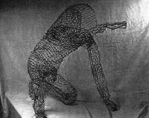 The above body is in a rough state and this is the time for the creative mind to take over. Chicken wire can be bent, formed, crushed, squeezed and cut into any shape you wish it to be. The picture below shows how the form can be 'sculpted' into a crouched figure. It is your "body", make it how you want it!!!!