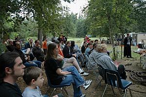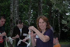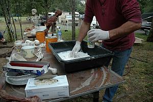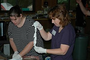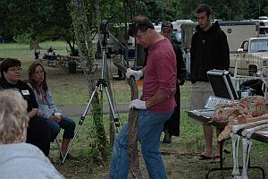 Right: Ericka Dunham and Michelle Marsh are part of the crew who had to run indoors when we got an unusual rain shower during the seminar. |