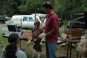 How appropriate that there are 13 pictures for this seminar. Raymond Latocki of "13th Door" was our instructor for this class and the makeup class. He and his crew did a fantastic job. You can always tell that someone is doing a good job or that a seminar is going well....there is a deathly silence in the air!! This group was as quiet as church mice. | ![]() |