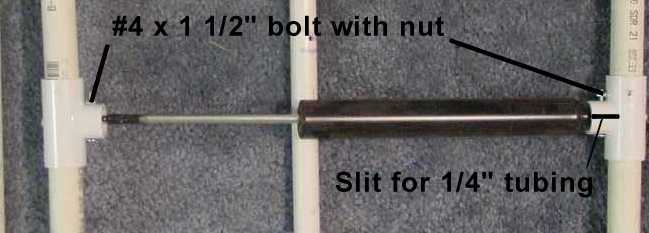| There is some modification that needs to be done for the door closers as far as attaching the air hose but the attaching of the closer is shown above. A hole is drilled through the 1/2" part of the tee making sure that you have enough room to put the nut on. An additional modification (slit) is cut into one of the tees to accomodate the 1/4" tubing. |